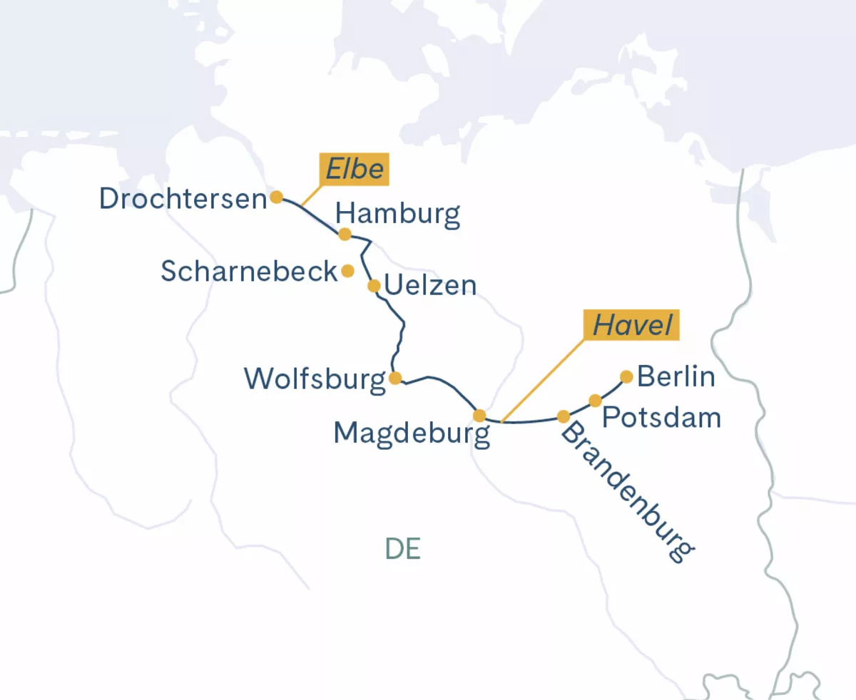 Kurz darauf erreichen Sie Hamburger Gebiet, wo sich der Fluss an der Bunthäuser Spitze in Süder- und Norderelbe teilt. Geniessen Sie die eindrucksvolle Kulisse der Hafenstadt Hamburg, bevor Sie zur Mittagszeit Drochtersen erreichen.