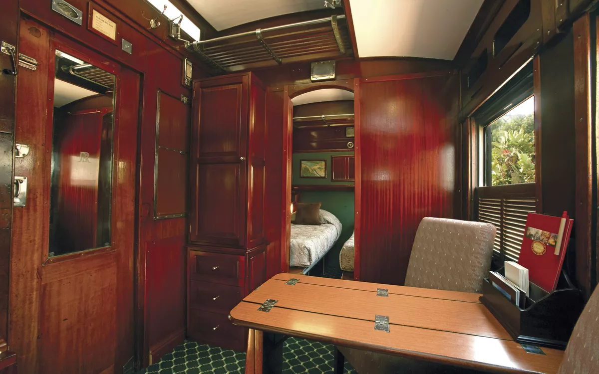 Heute geniessen Sie die Annehmlichkeiten Ihres Sonderzuges. Die offene Aussichtsplattform des gemütlichen Lounge-Wagens bietet Ihnen einen unverstellten Blick in die Wildnis – ein Paradies für Fotografen und Naturliebhaber! Lauschen Sie den Bordvorträgen Ihrer Reiseleitung, widmen Sie sich Ihrer Bordlektüre oder führen Sie anregende Gespräche mit Ihren Mitreisenden. Im Barwagen können Sie bei einem kühlen Windhoek Lager entspannen.