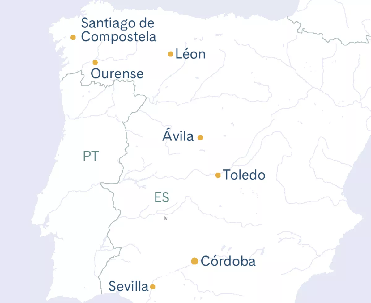 Spanien, ein beeindruckender Schmelztiegel orientalischer und westlicher Kulturen, zählt zu den faszinierendsten Ländern der Welt. Ihre genussvolle Sonderzugreise mit dem legendären Al Ándalus, einem exklusiv für Sie gecharterten Nostalgie-Zug im Stil der Belle Époque, führt Sie auf einer einzigartigen Strecke von etwa 1250 km durch Andalusien und Kastilien bis hin zur Atlantikküste in Galicien. Zu den Höhepunkten Ihrer Reise gehören einige der schönsten Städte Spaniens, darunter Sevilla, Córdoba, Toledo, Ávila, León und Santiago de Compostela. Lassen Sie sich von sechs UNESCO-Welterbe-Stätten verzaubern, die mit malerisch gelegenen Burgen, Klöstern und beeindruckenden Palästen inmitten historischer Stadtkerne aufwarten. Entdecken Sie verwinkelte Gassen, vielfältige kulturelle Facetten und bedeutende historische Sehenswürdigkeiten.