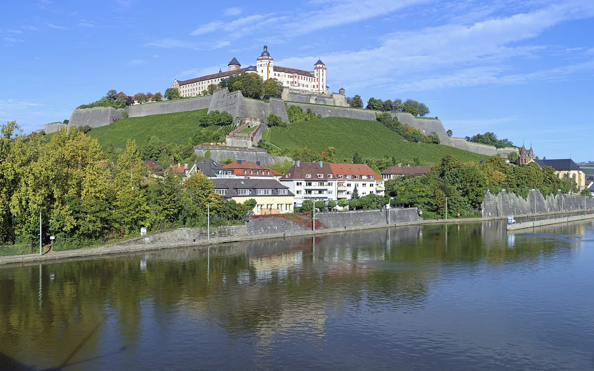 Per Schiff geht es am frühen Morgen vorbei an Gemünden nach Karlstadt, wo Sie aufs Velo steigen. Altstadtromantik und Dorfidylle - Karlstadt bietet beides. Entdecken Sie über 800 Jahre alte Bauwerke in der von Mauern, Türmen und Toren umgebenen Altstadt. Radeln Sie danach gemütlich nach Würzburg, wo Sie nachmittags auf Ihr Schiff treffen. Besuchen Sie die Würzburger Residenz, die bereits seit 1981 zum UNESCO-Weltkulturerbe zählt oder geniessen Sie den schönen Ausblick von der Festung Marienburg über Stadt und Weinberge.