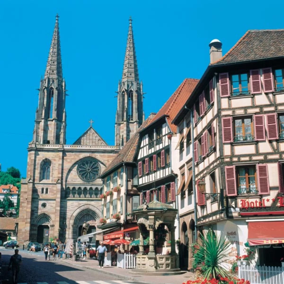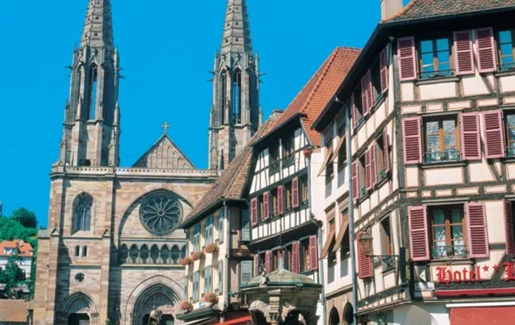 Das hübsche Obernai an den Ufern der Ehn befindet sich 25 km nordöstlich von Straßburg und trug früher den Namen Ehnheim. Alles erinnert an die heilige Odilia, die Schutzpatronin des Elsass. Der Sechs-Eimer-Brunnen von 1579, das Kornhaus am Marktplatz, die Kirche Saints Pierre et Paul und die historische Altstadt mit ihrem Stadtmauerring sind einige der Sehenswürdigkeite eine besondere Stimmung ausstrahlen.