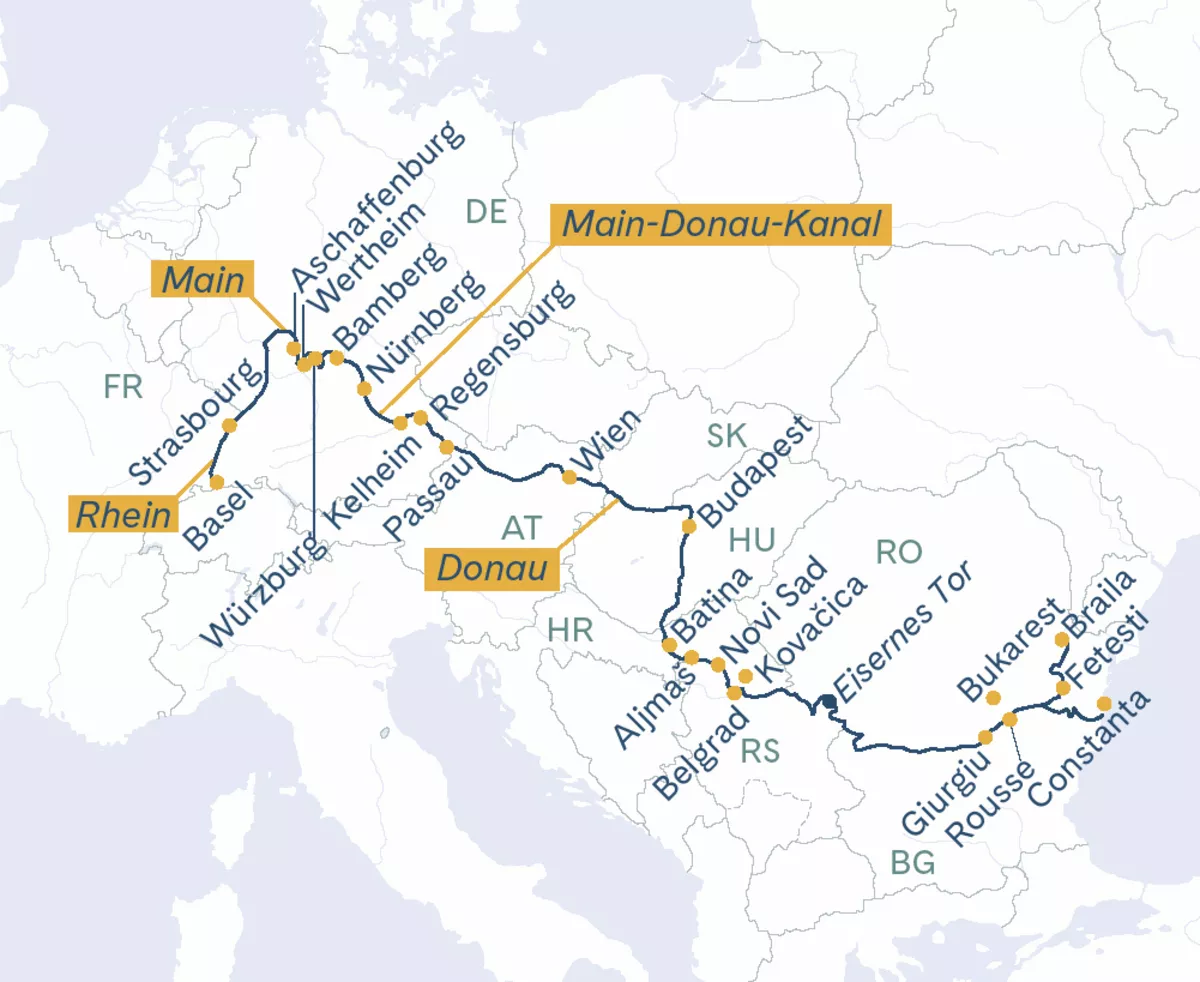 Von Basel führt diese einmalig schöne Flusskreuzfahrt entlang von unterschiedlichen Naturlandschaften, verträumten Orten und pulsierenden Metropolen des Rheins, des Mains, des Main-Donau-Kanals und der Donau bis zum Schwarzen Meer. Jeder der einzelnen zu passierenden Flüsse wird Sie mit seinen Eigenheiten und abwechslungsreichen Uferlandschaften begeistern. Während 19 bzw. 20 Tagen erleben Sie nicht nur eine Reise durch unterschiedliche Länder und Kulturen, sondern geniessen auch täglich den Luxus Ihres schwimmenden Hotels, der MS Thurgau Prestige, mit allen Annehmlichkeiten an Bord.