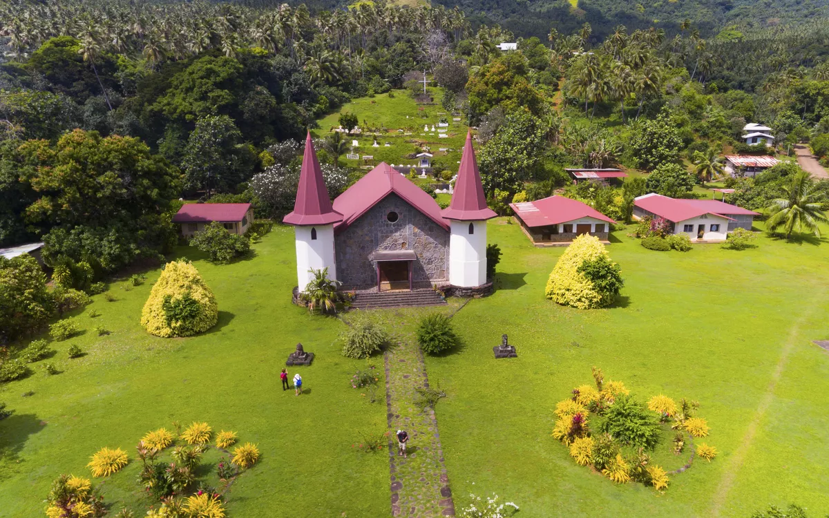 Besuch des Dorfs Hakahau mit charmanter Kirche und Ausblick über die Vulkanlandschaft. Lassen Sie sich die polynesischen Spezialitäten schmecken.