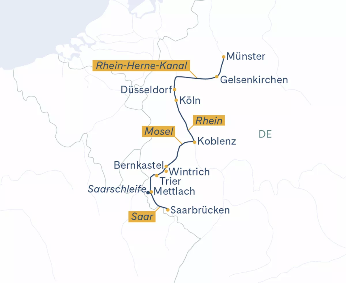 Willkommen an Bord der eleganten MS Thurgau Saxonia – Ihre schwimmende Heimat auf einer faszinierenden Flussreise von Saarbrücken nach Münster. Diese besondere Route vereint landschaftliche Schönheit mit kulturellem Reichtum und architektonischer Vielfalt. Entlang des Weges erwarten Sie traditionsreiche Städte, imposante Kirchen, Fachwerkidylle und eindrucksvolle Zeugnisse europäischer Baukunst – von barocken Schlössern bis hin zu gotischen Kathedralen. Tauchen Sie ein in die Geschichte der Region, erleben Sie lebendige Kultur und geniessen Sie den Komfort und die entspannte Atmosphäre an Bord.