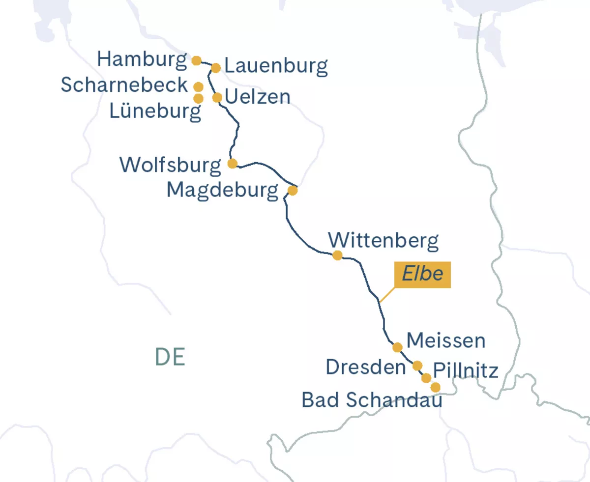 Entspannen Sie bei der Fahrt auf der Elbe und geniessen Sie die vorbeiziehenden Landschaften. Nachmittags Rundgang(2) durch die Altstadt Wittenbergs. Entdecken Sie das UNESCO-Welterbe «Luthergedenkstätten Wittenberg» Schlosskirche mit Thesentür, Stadtkirche, Melanchtohnhaus und Lutherhaus. Am frühen Abend wird die Fahrt fortgesetzt und Sie fahren entlang der Dübener und der Dahlener Heide.