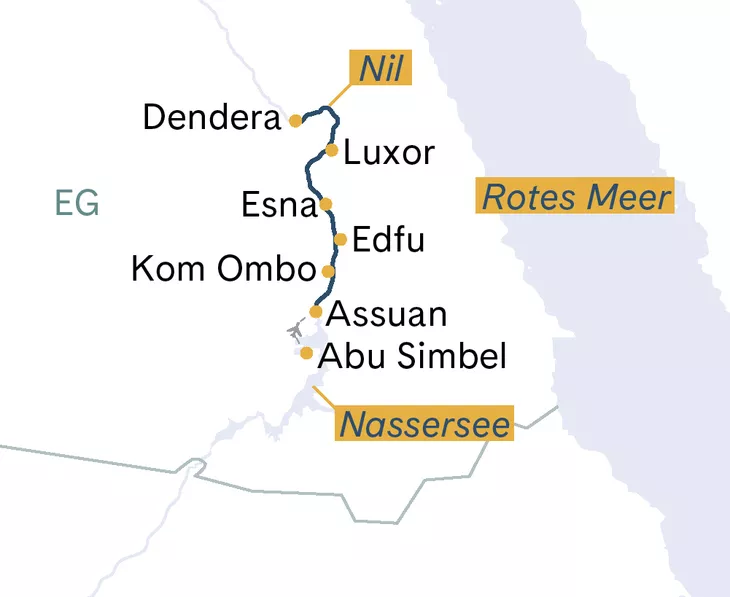 Diese aussergewöhnliche Reise kombiniert ein 6-tägiges Vorprogramm in Kairo mit einer 8-tägigen Flusskreuzfahrt auf dem Nil ab/bis Luxor. Entdecken Sie die beeindruckenden Schätze der altägyptischen Hochkultur – von den weltberühmten Pyramiden von Gizeh über die historischen Schätze des Ägyptischen Museums bis hin zu den lebendigen Gassen der Altstadt Kairos. Im Anschluss geniessen Sie den Zauber des Nils an Bord eines luxuriösen Suiten-Schiff, während Sie majestätische Tempelanlagen und faszinierende archäologische Stätten entlang der Route zwischen Luxor und Assuan erleben. Eine Reise, die Vergangenheit und Gegenwart auf einzigartige Weise verbindet.