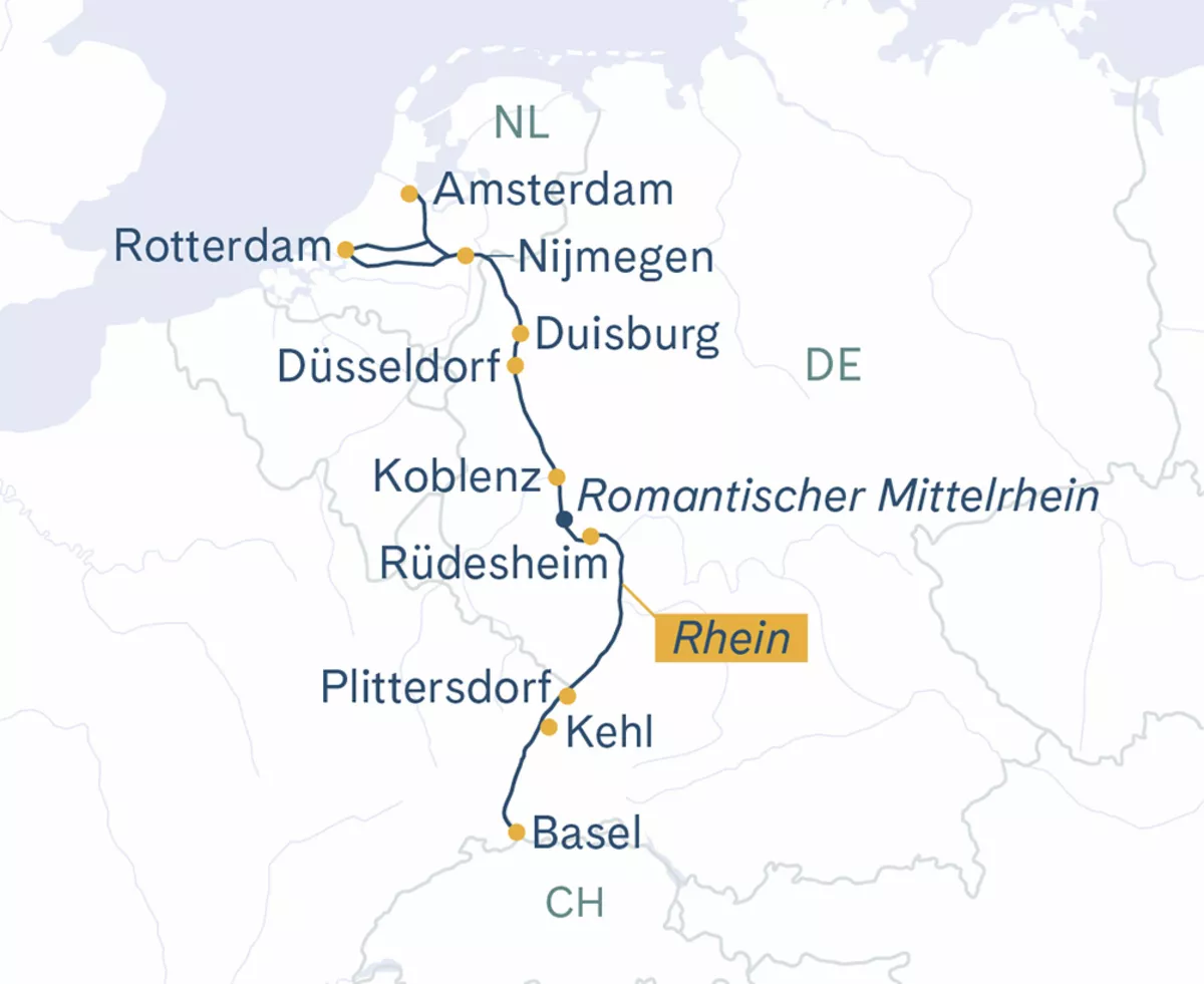 Individuelle Anreise nach Basel. Einschiffung ab 15:00 Uhr und um 16:00 Uhr heisst es «Leinen los!».