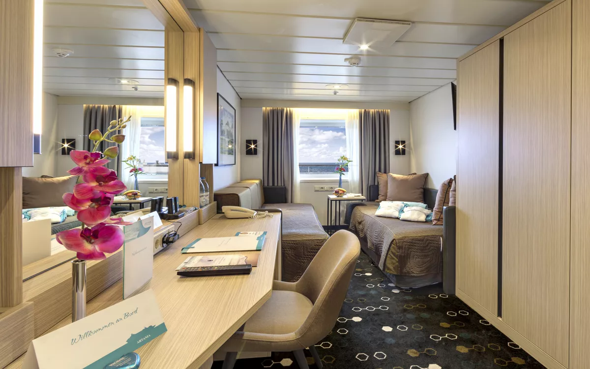 Innen war gestern, Artania ist heute. Ganz im Stil moderner Luxusschiffe bietet MS ARTANIA nur Aussenkabinen. Allerdings gibt es bei Phoenix das neue Reisegefühl zu einem verträglichen Preis.