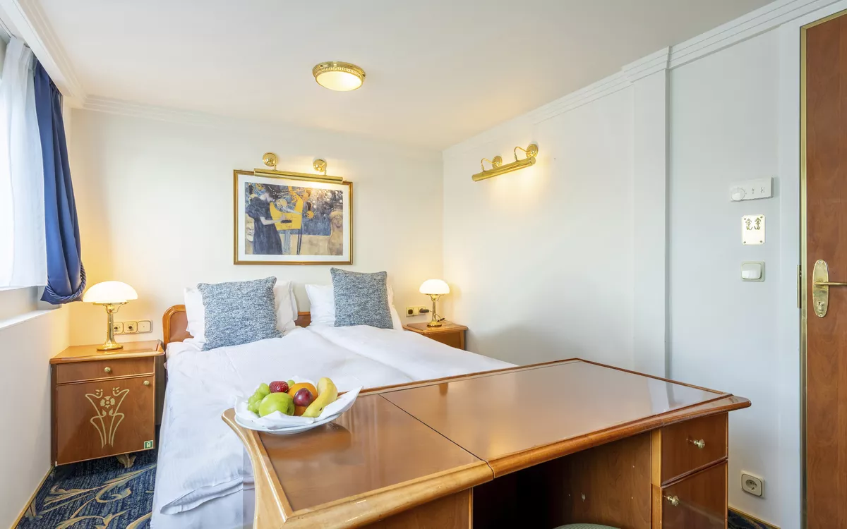 Das im Belle Époque-Stil konzipierte Schiff bietet den max. 80 Passagieren viel Komfort und Ambiente. Alle Kabinen sind mit Dusche/WC, Föhn, TV, Safe, Kühlschrank, Bordtelefon und individuell regulierbarer Klimaanlage ausgestattet. Die ca. 12 m² grossen, aussen liegenden 2-Bettkabinen verfügen entweder über ein Doppelbett (1.50 × 2.00 m) mit zwei Matratzen oder über ein Sofabett und ein feststehendes Bett. Die beiden Deluxe Kabinen (ca. 13 m²) besitzen ein Doppelbett mit zwei Matratzen. Die 1-Bettkabinen (ca. 9 m²) verfügen über ein Sofabett. Sämtliche Kabinen des Oberdecks haben einen französischen Balkon. Die Fenster der Kabinen auf dem Hauptdeck lassen sich aus Sicherheitsgründen nicht öffnen.